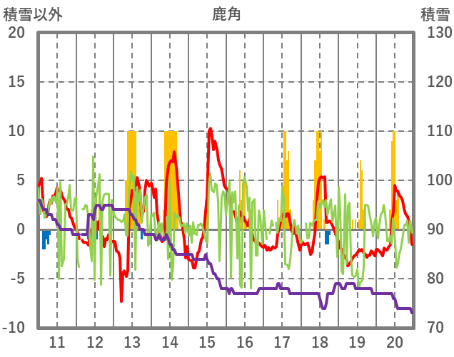 | 日 | 時 | 気温 | 降水 | 風向/風速 | 日照 | 積雪 | 降雪 |