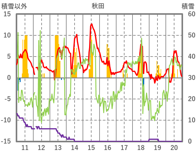 | 日 | 時 | 気温 | 降水 | 風向/風速 | 日照 | 積雪 | 降雪 |