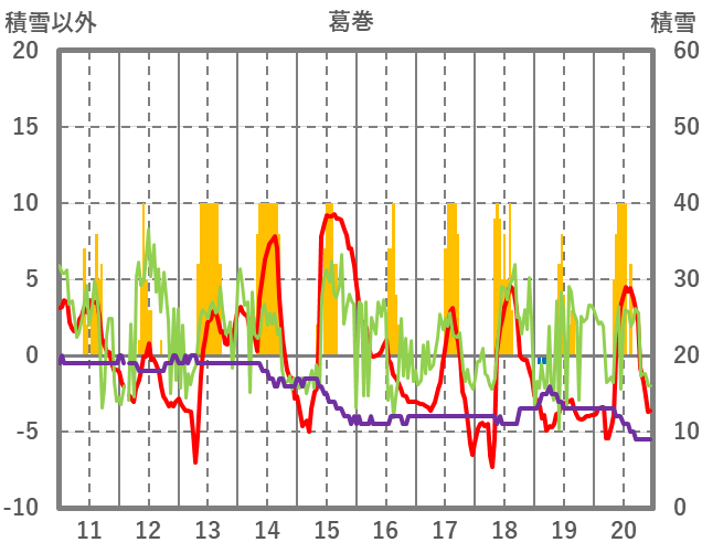 | 日 | 時 | 気温 | 降水 | 風向/風速 | 日照 | 積雪 | 降雪 |