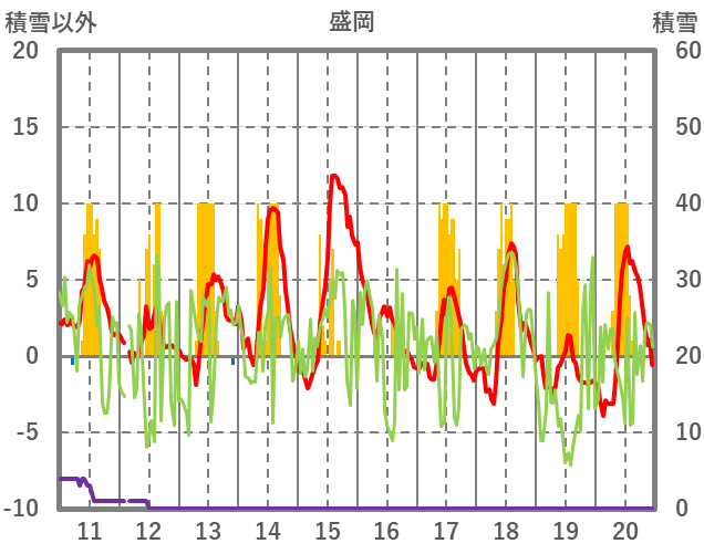 | 日 | 時 | 気温 | 降水 | 風向/風速 | 日照 | 積雪 | 降雪 |