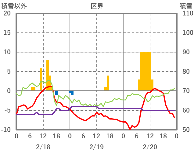 | 日 | 時 | 気温 | 降水 | 風向/風速 | 日照 | 積雪 | 降雪 |
