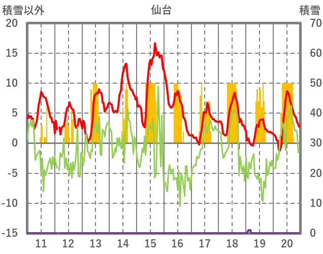 | 日 | 時 | 気温 | 降水 | 風向/風速 | 日照 | 積雪 | 降雪 |