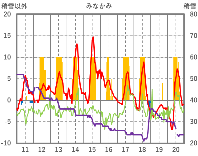 | 日 | 時 | 気温 | 降水 | 風向/風速 | 日照 | 積雪 | 降雪 |