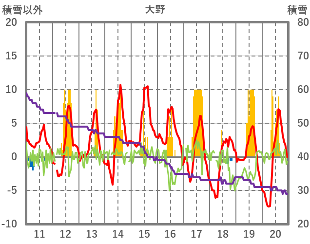 | 日 | 時 | 気温 | 降水 | 風向/風速 | 日照 | 積雪 | 降雪 |