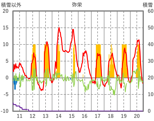 | 日 | 時 | 気温 | 降水 | 風向/風速 | 日照 | 積雪 | 降雪 |