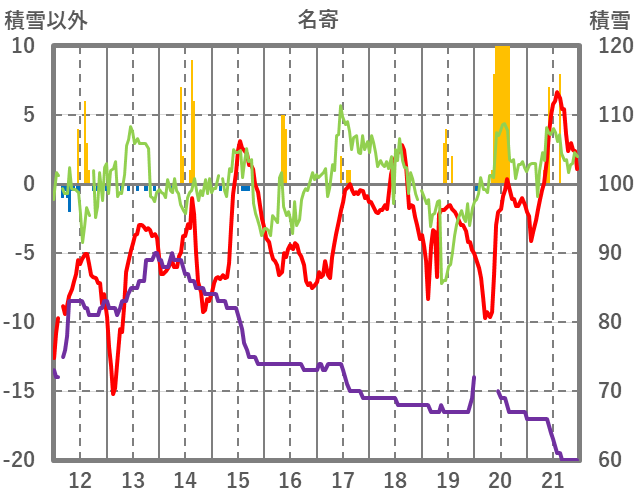 | 日 | 時 | 気温 | 降水 | 風向/風速 | 日照 | 積雪 | 降雪 |