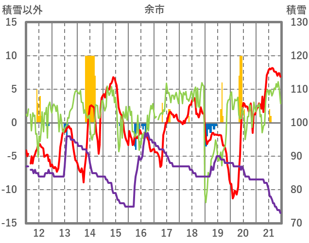 | 日 | 時 | 気温 | 降水 | 風向/風速 | 日照 | 積雪 | 降雪 |
