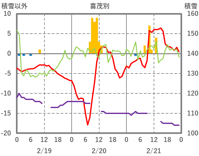 | 日 | 時 | 気温 | 降水 | 風向/風速 | 日照 | 積雪 | 降雪 |