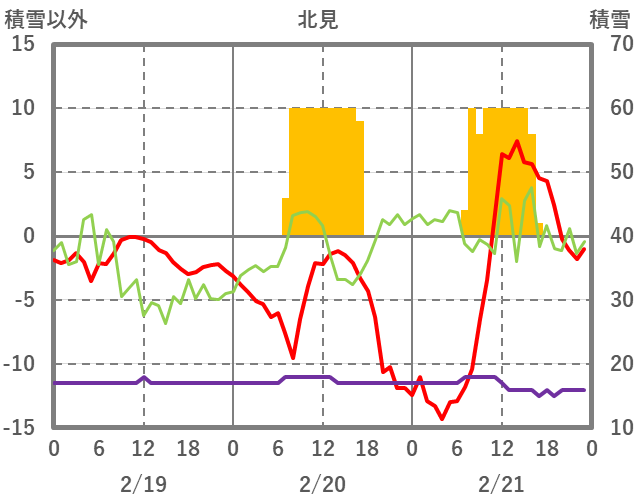 | 日 | 時 | 気温 | 降水 | 風向/風速 | 日照 | 積雪 | 降雪 |
