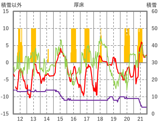 | 日 | 時 | 気温 | 降水 | 風向/風速 | 日照 | 積雪 | 降雪 |