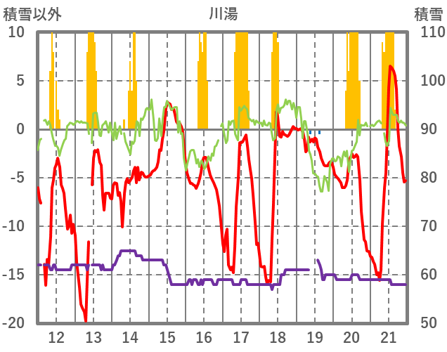 | 日 | 時 | 気温 | 降水 | 風向/風速 | 日照 | 積雪 | 降雪 |