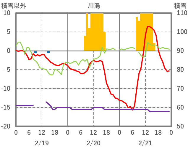 | 日 | 時 | 気温 | 降水 | 風向/風速 | 日照 | 積雪 | 降雪 |