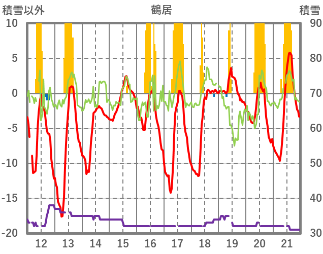 | 日 | 時 | 気温 | 降水 | 風向/風速 | 日照 | 積雪 | 降雪 |