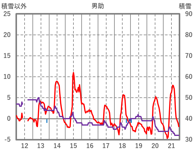 | 日 | 時 | 気温 | 降水 | 風向/風速 | 日照 | 積雪 | 降雪 |