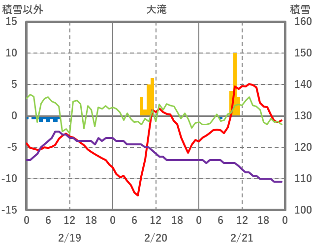 | 日 | 時 | 気温 | 降水 | 風向/風速 | 日照 | 積雪 | 降雪 |