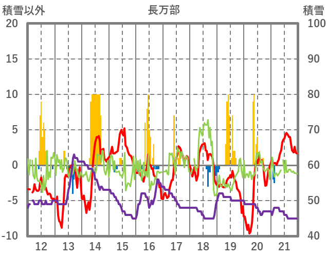 | 日 | 時 | 気温 | 降水 | 風向/風速 | 日照 | 積雪 | 降雪 |
