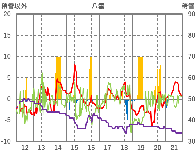 | 日 | 時 | 気温 | 降水 | 風向/風速 | 日照 | 積雪 | 降雪 |
