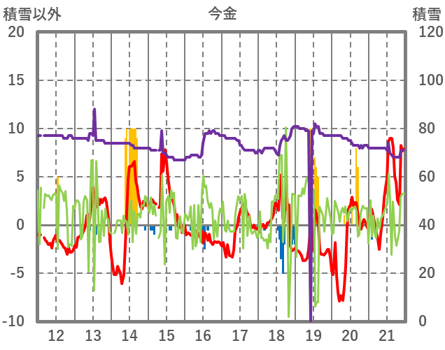 | 日 | 時 | 気温 | 降水 | 風向/風速 | 日照 | 積雪 | 降雪 |