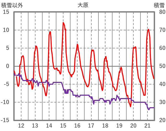 | 日 | 時 | 気温 | 降水 | 風向/風速 | 日照 | 積雪 | 降雪 |