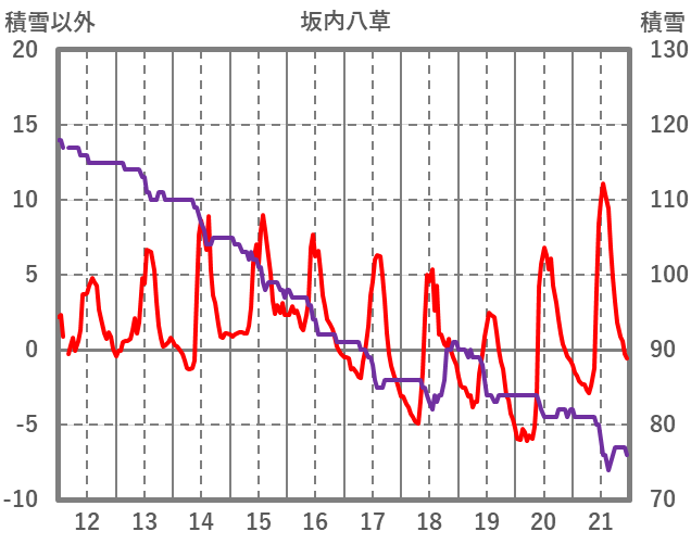 | 日 | 時 | 気温 | 降水 | 風向/風速 | 日照 | 積雪 | 降雪 |