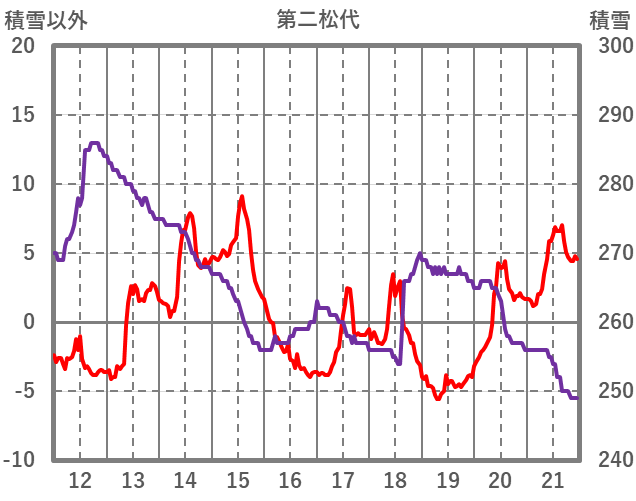 | 日 | 時 | 気温 | 降水 | 風向/風速 | 日照 | 積雪 | 降雪 |
