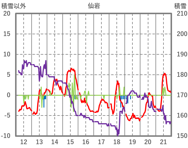 | 日 | 時 | 気温 | 降水 | 風向/風速 | 日照 | 積雪 | 降雪 |