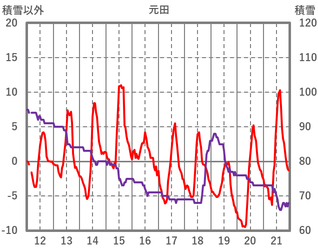 | 日 | 時 | 気温 | 降水 | 風向/風速 | 日照 | 積雪 | 降雪 |
