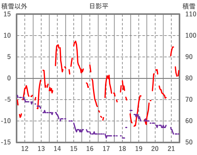 | 日 | 時 | 気温 | 降水 | 風向/風速 | 日照 | 積雪 | 降雪 |