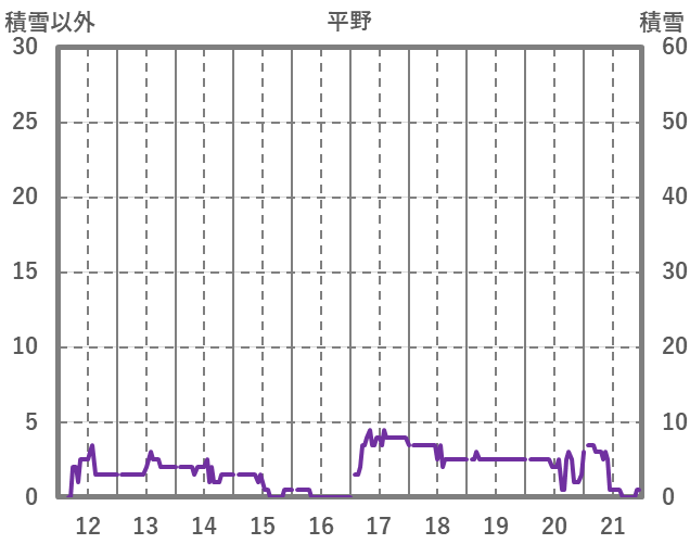 | 日 | 時 | 気温 | 降水 | 風向/風速 | 日照 | 積雪 | 降雪 |