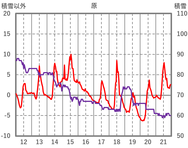 | 日 | 時 | 気温 | 降水 | 風向/風速 | 日照 | 積雪 | 降雪 |