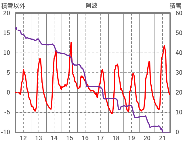 | 日 | 時 | 気温 | 降水 | 風向/風速 | 日照 | 積雪 | 降雪 |