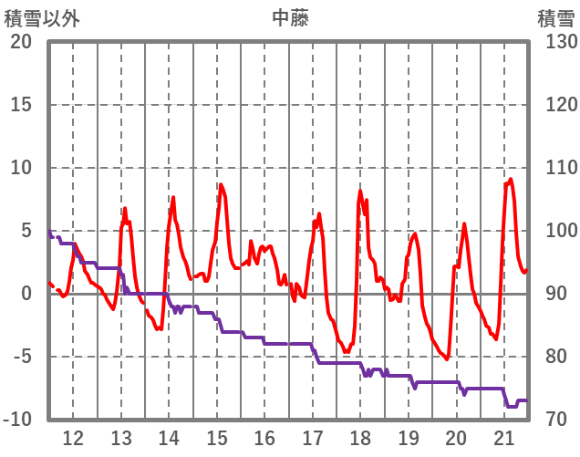 | 日 | 時 | 気温 | 降水 | 風向/風速 | 日照 | 積雪 | 降雪 |