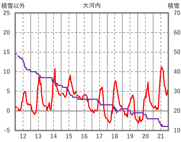 | 日 | 時 | 気温 | 降水 | 風向/風速 | 日照 | 積雪 | 降雪 |