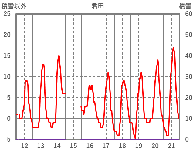 | 日 | 時 | 気温 | 降水 | 風向/風速 | 日照 | 積雪 | 降雪 |