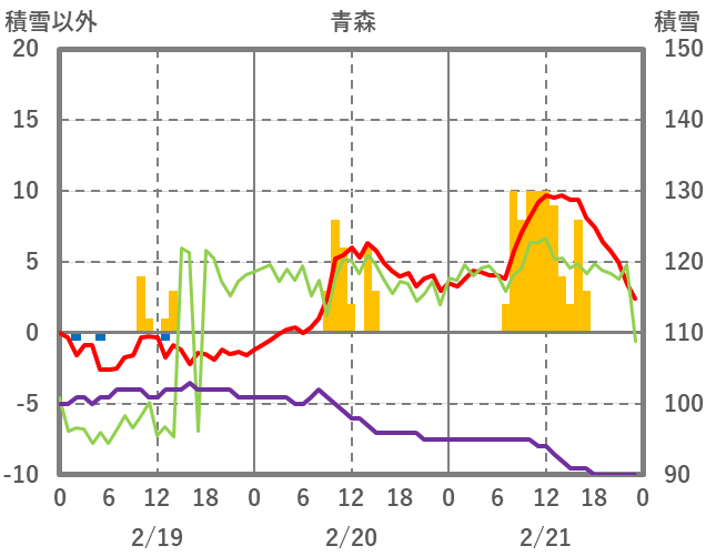 | 日 | 時 | 気温 | 降水 | 風向/風速 | 日照 | 積雪 | 降雪 |