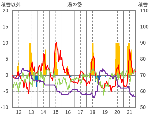 | 日 | 時 | 気温 | 降水 | 風向/風速 | 日照 | 積雪 | 降雪 |