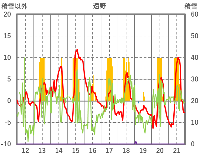 | 日 | 時 | 気温 | 降水 | 風向/風速 | 日照 | 積雪 | 降雪 |