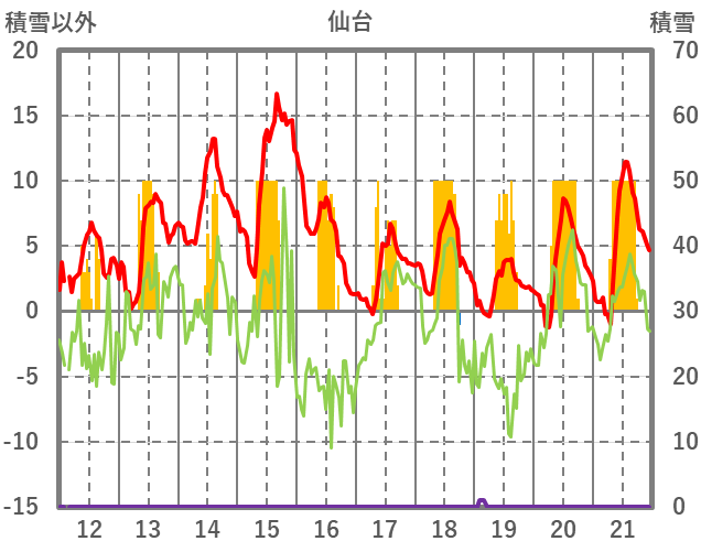 | 日 | 時 | 気温 | 降水 | 風向/風速 | 日照 | 積雪 | 降雪 |