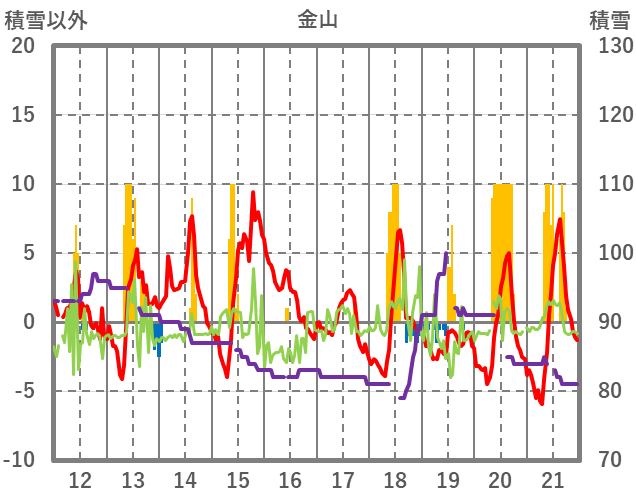 | 日 | 時 | 気温 | 降水 | 風向/風速 | 日照 | 積雪 | 降雪 |