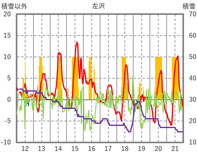 | 日 | 時 | 気温 | 降水 | 風向/風速 | 日照 | 積雪 | 降雪 |