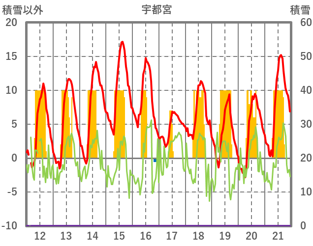 | 日 | 時 | 気温 | 降水 | 風向/風速 | 日照 | 積雪 | 降雪 |