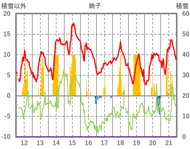 | 日 | 時 | 気温 | 降水 | 風向/風速 | 日照 | 積雪 | 降雪 |
