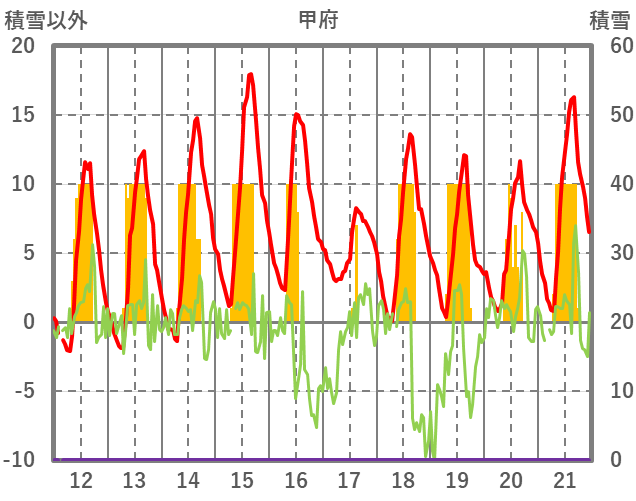 | 日 | 時 | 気温 | 降水 | 風向/風速 | 日照 | 積雪 | 降雪 |