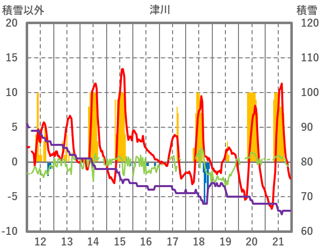 | 日 | 時 | 気温 | 降水 | 風向/風速 | 日照 | 積雪 | 降雪 |
