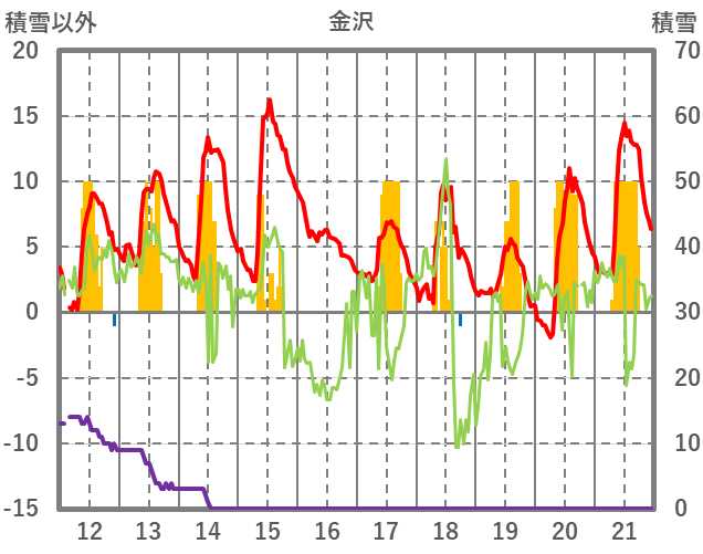 | 日 | 時 | 気温 | 降水 | 風向/風速 | 日照 | 積雪 | 降雪 |