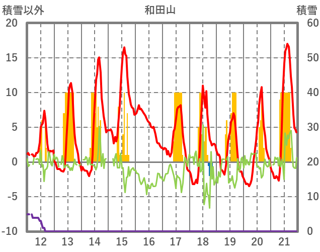 | 日 | 時 | 気温 | 降水 | 風向/風速 | 日照 | 積雪 | 降雪 |