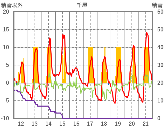 | 日 | 時 | 気温 | 降水 | 風向/風速 | 日照 | 積雪 | 降雪 |