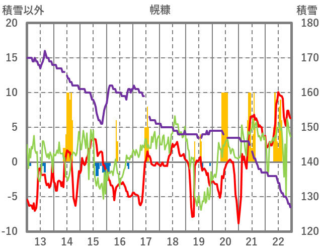 | 日 | 時 | 気温 | 降水 | 風向/風速 | 日照 | 積雪 | 降雪 |