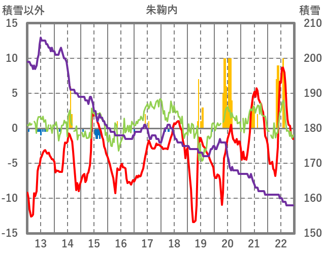 | 日 | 時 | 気温 | 降水 | 風向/風速 | 日照 | 積雪 | 降雪 |