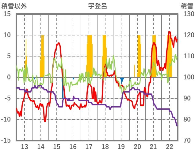 | 日 | 時 | 気温 | 降水 | 風向/風速 | 日照 | 積雪 | 降雪 |